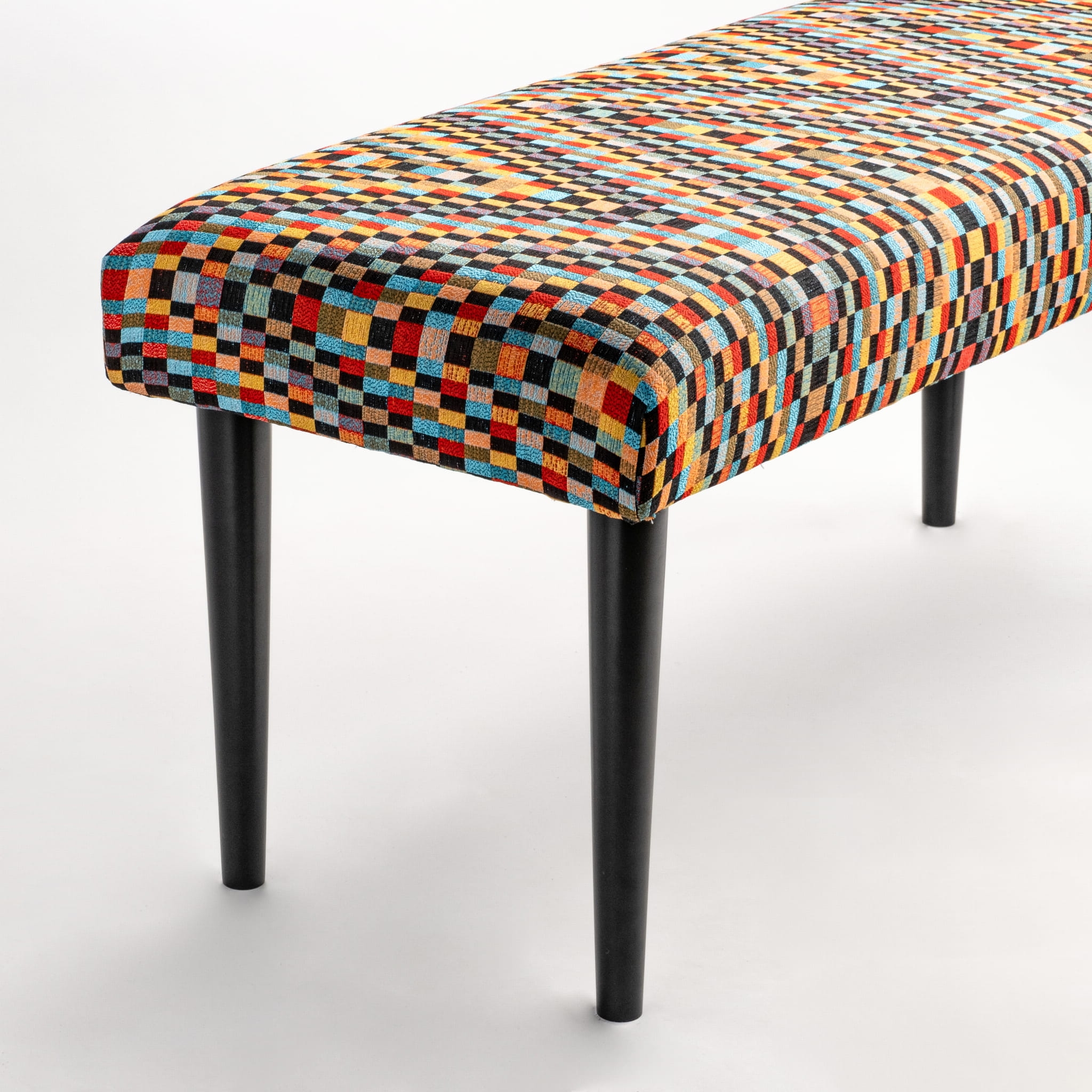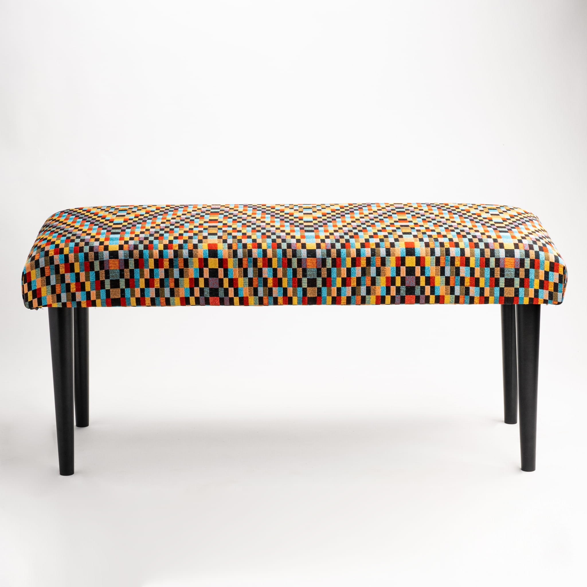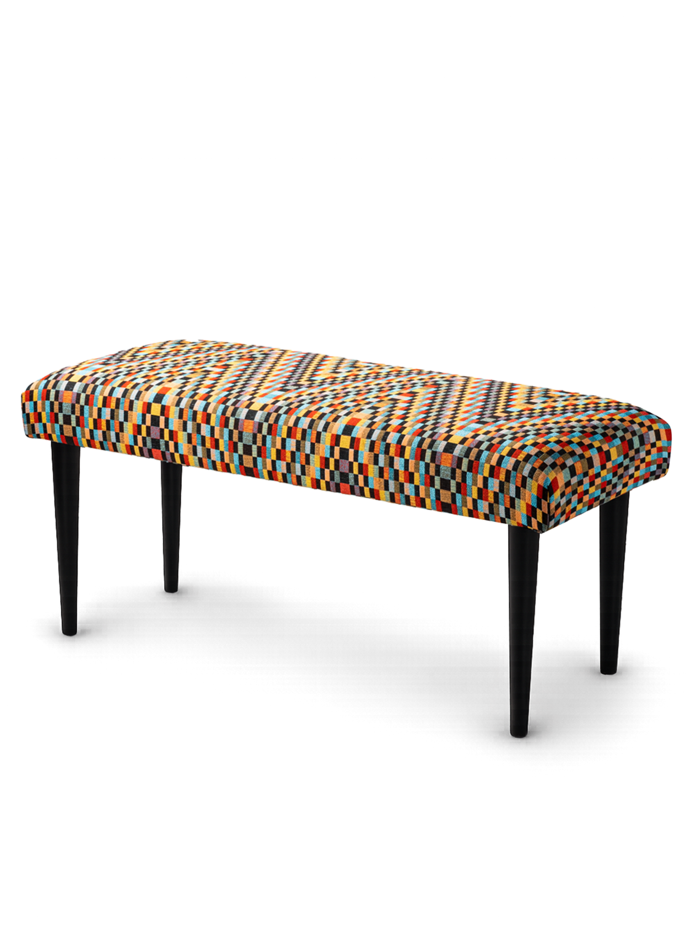 Een moderne, gladde zitting in veelkleurige geometrische patronen gecombineerd met een pootmodel naar keuze. Creëer je eigen bankconfiguratie die perfect bij je interieur past!