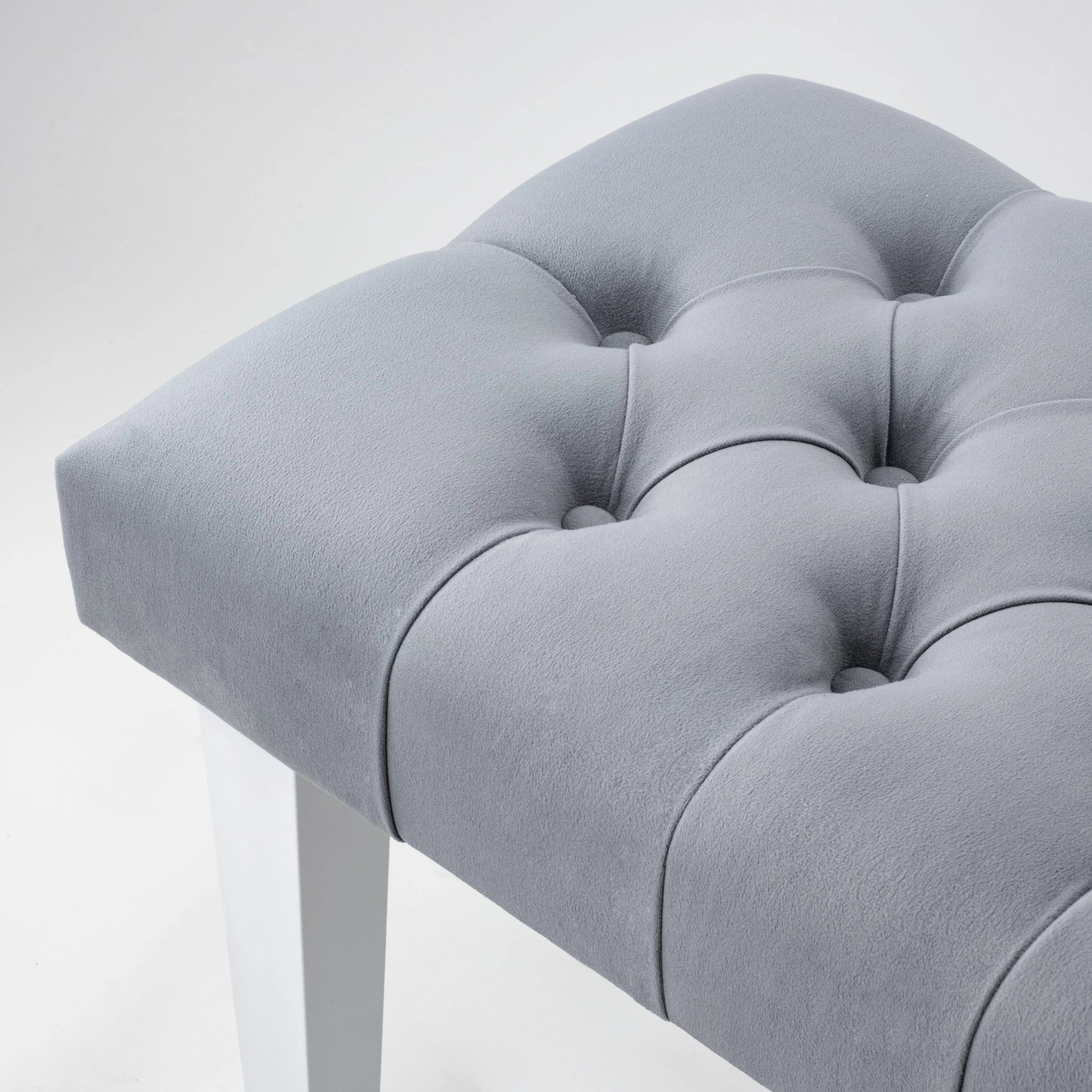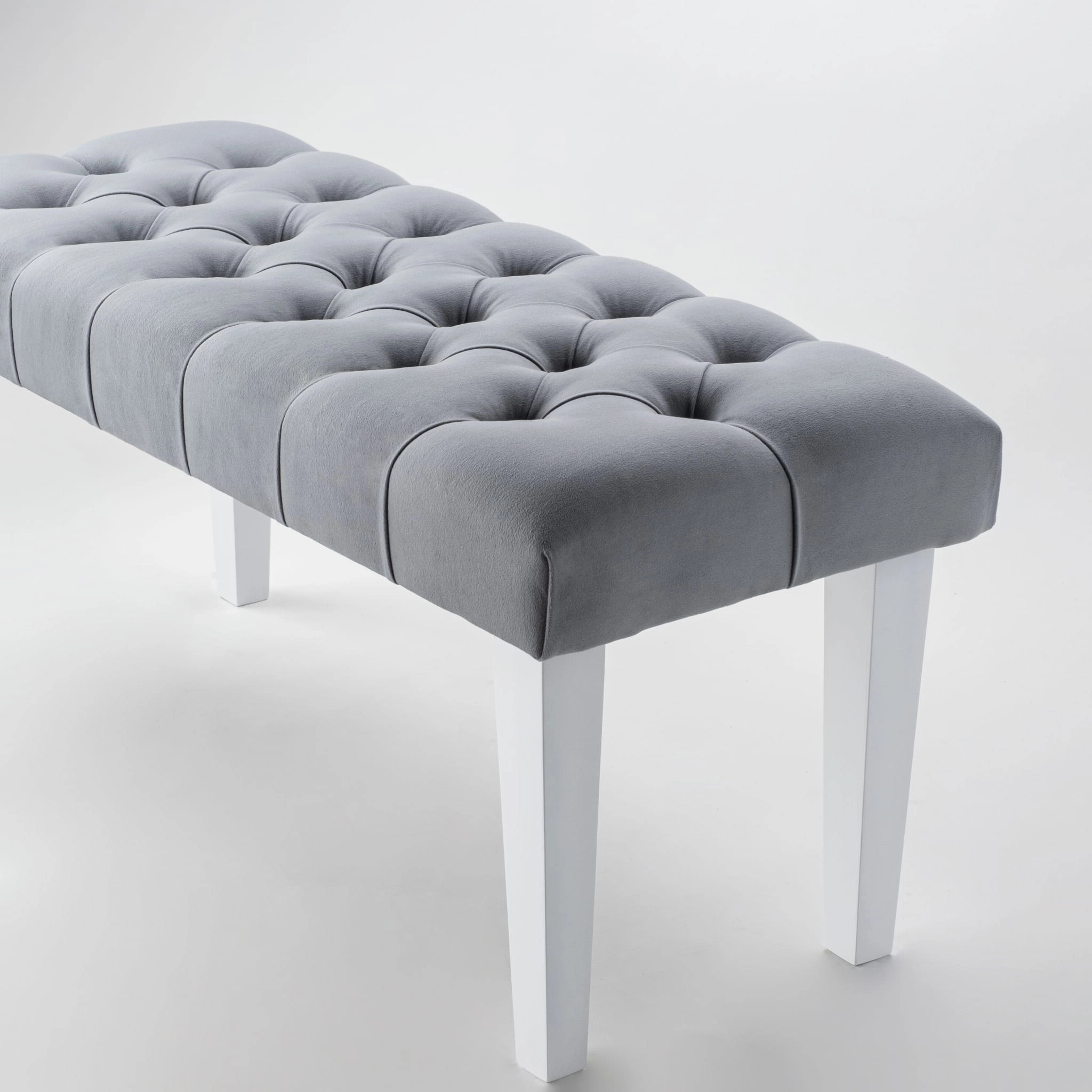 Het Costa bankje is een handgemaakte glamourpoef op bestelling. Regelmatige onregelmatigheden in de zitting van stof van de hoogste kwaliteit en perfect rechte poten van beukenhout garanderen duurzaamheid en stabiliteit. Een halbank die glamour toevoegt aan je huis is binnen handbereik. Als je een bankje in de slaapkamer plaatst, stem dan de afmetingen perfect af op het bed en een hoofdeinde in elke stijl.