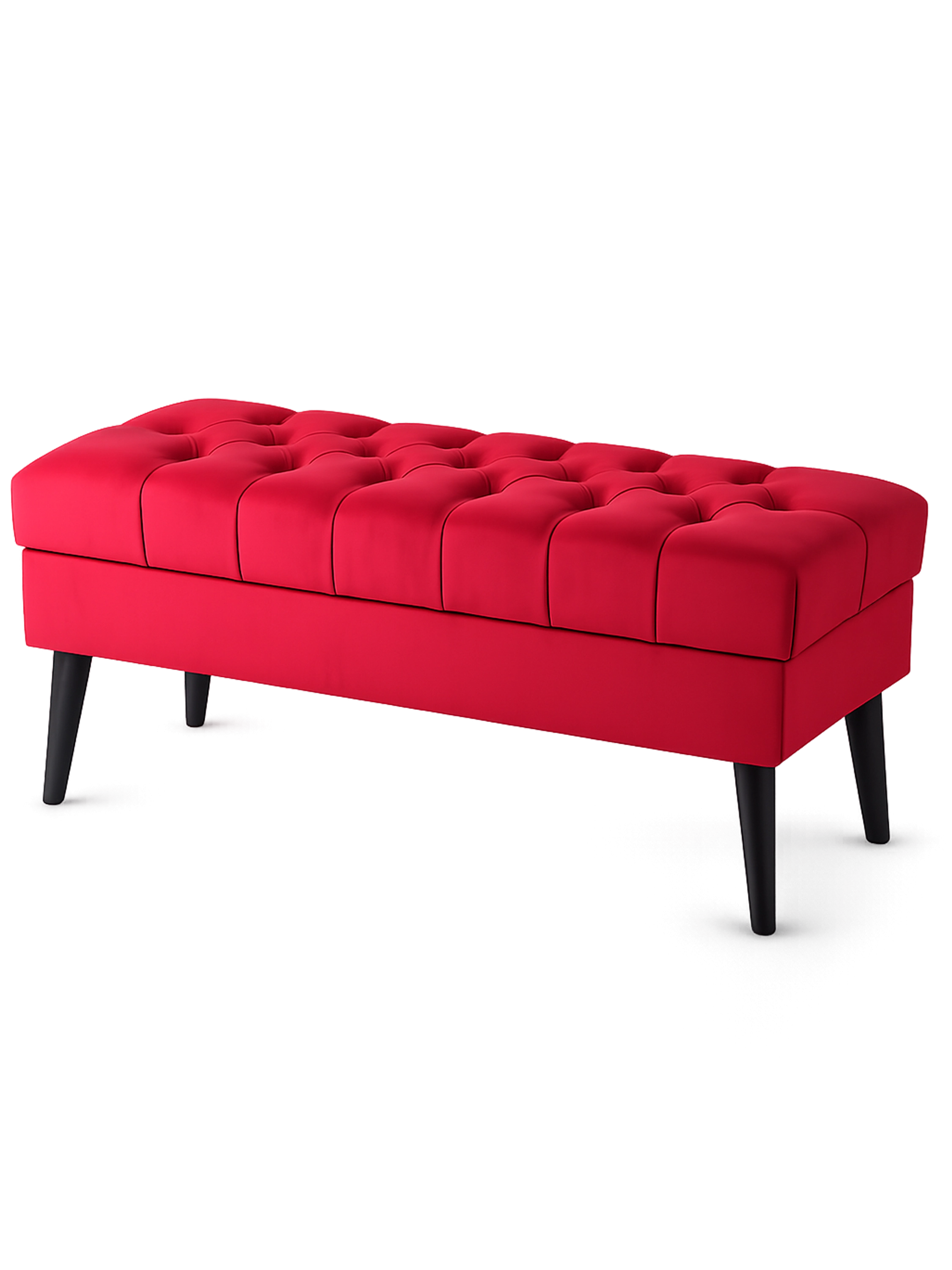 Romantiek ten top! Een zitbankje met opbergruimte voor de slaapkamer, badkamer of hal. Dieprood, bloedrood en hartverwarmend rood sieren ons bankje. Het bekledingsmateriaal is bestand tegen vlekken, slijtage en zonnestralen. Het is Oeko-Tex-gecertificeerd en gezondheidsveilig zoals hypoallergeen schuim en katoen. Het deksel met de zitting rust op veerscharnieren, die we niet zullen horen bij het openen omdat ze geruisloos zijn. De poten van dit hete zitbankje met opbergruimte zijn gemaakt van klasse A beukenhout. Ze zijn gespoten, zodat ze geen enkele lakvlek achterlaten.
