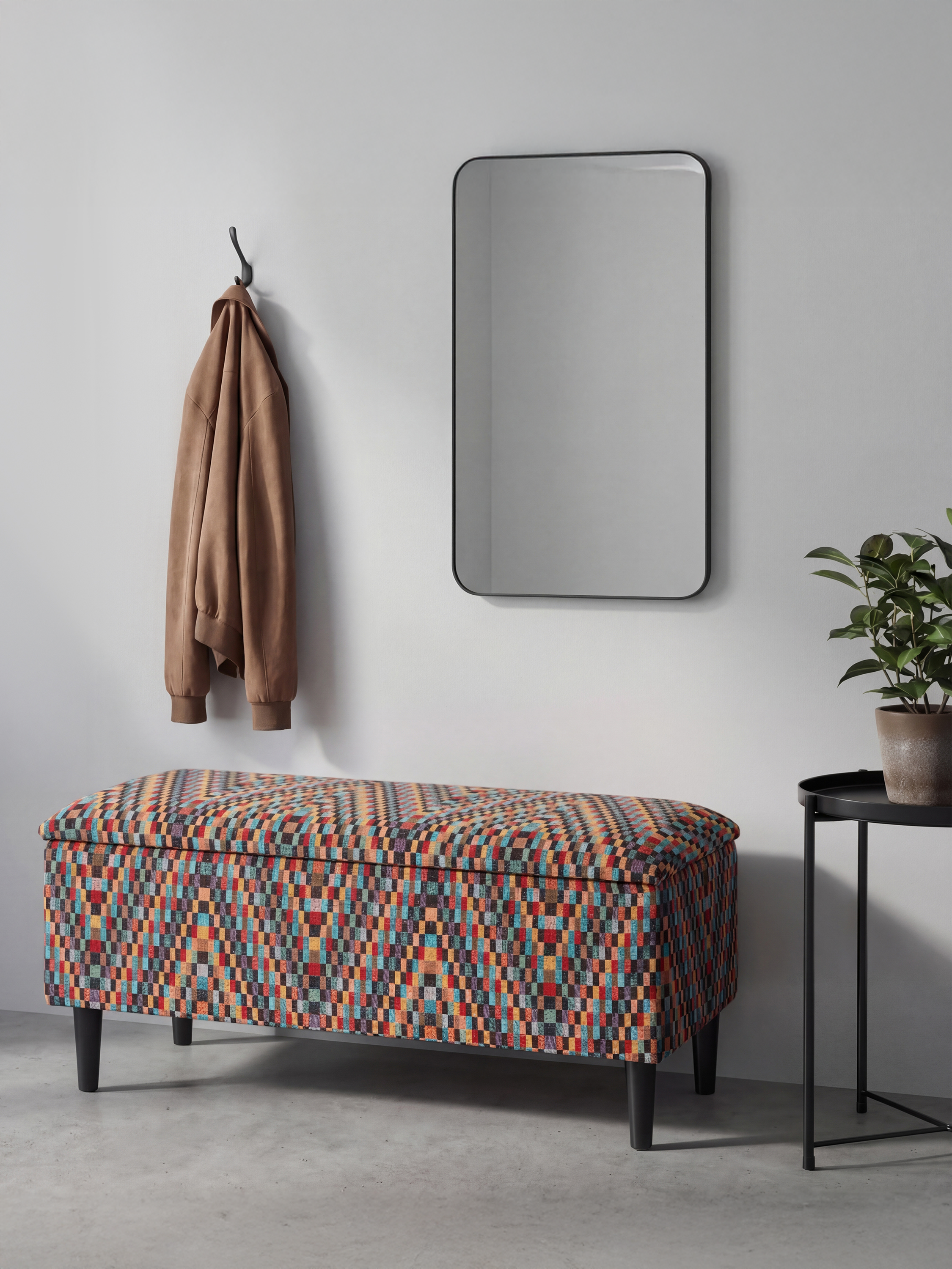 Barcelona is een van de populairste stoffen die verkrijgbaar zijn in onze winkel, en dat is niet voor niets. Het unieke ontwerp trekt meer aandacht dan enig ander en staat ook bekend om zijn hoge vlek- en slijtvastheid. De zitting van deze truhe is gevuld met hypoallergeen schuim en de toegang tot de opbergruimte verloopt via geruisloze veerflappen. De zijkanten van de truhe zijn opgevuld met schuim en het hele frame rust op stevige poten van hoogwaardig klasse A beukenhout, die stabiliteit en duurzaamheid garanderen. Met deze truhe krijg je niet alleen een stijlvol meubelstuk, maar ook een praktische opbergoplossing en een comfortabele zitplaats om uit te rusten.