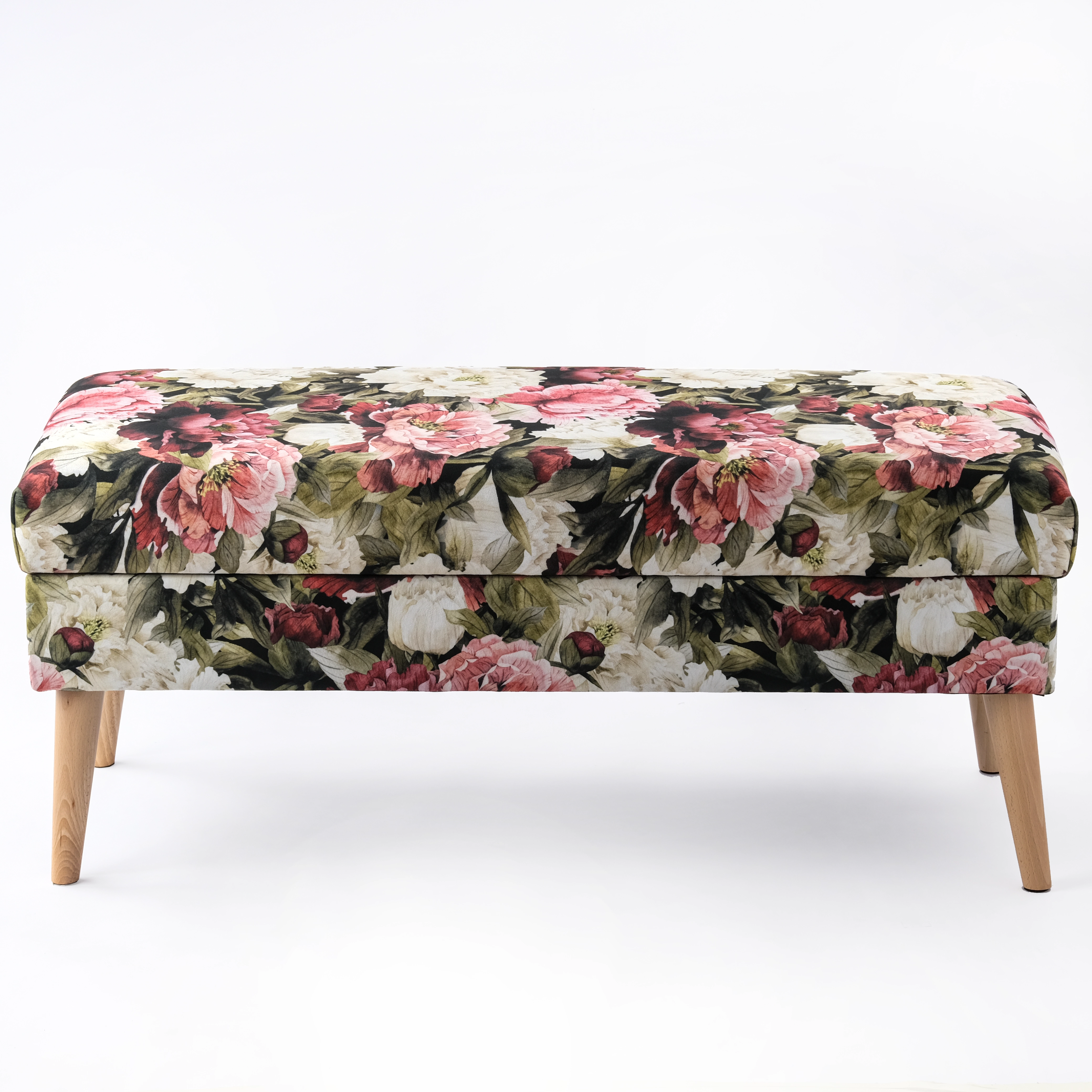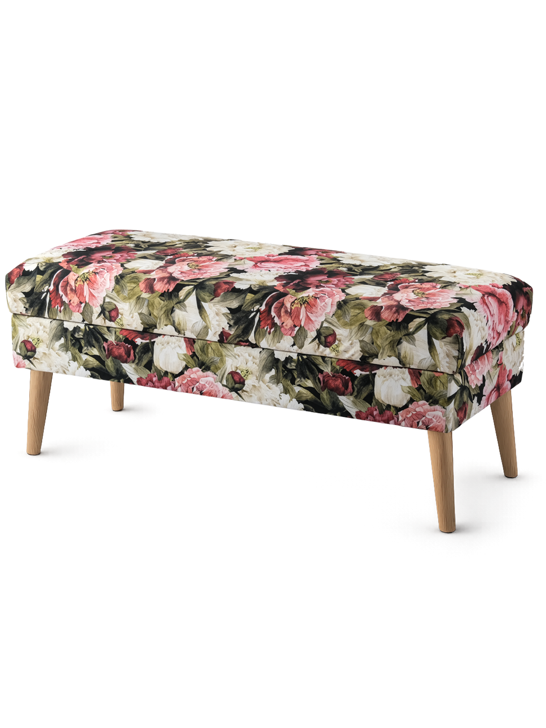 Pioenrozen komen voor in vele verschillende kleuren, waarbij we ons richten op roze. Deze een van de mooiste bloemen vind je terug op onze opbergbank voor slaapkamers, gangen en zelfs in de badkamer. Waarom? De stof die voor de bekleding wordt gebruikt, is bestand tegen vlekken, vocht en slijtage. De zitting wordt geopend met zeer stille veerscharnieren. De poten van deze kist zijn gemaakt van klasse A beukenhout. Het zorgvuldig geselecteerde hout wordt eerst gedroogd, vervolgens vormen we het en ten slotte spuiten we het in met een stootvaste lak.