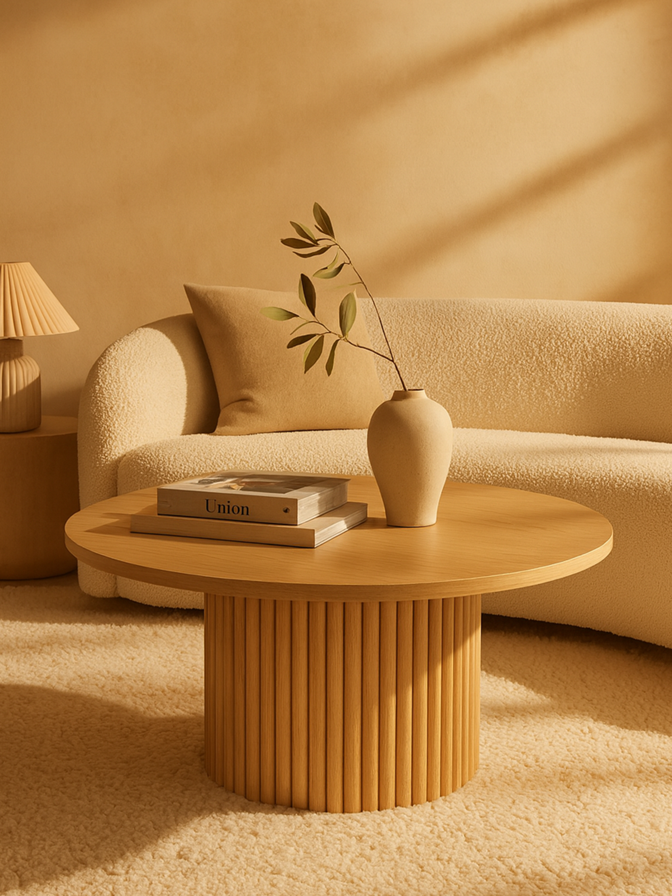Opmerkelijke salontafels met een rond blad en gegroefde poten in verschillende maten en kleuren kunnen in de woonkamer, slaapkamer of zelfs badkamer worden geplaatst en dienen als bijzettafel of bloemenvaas.