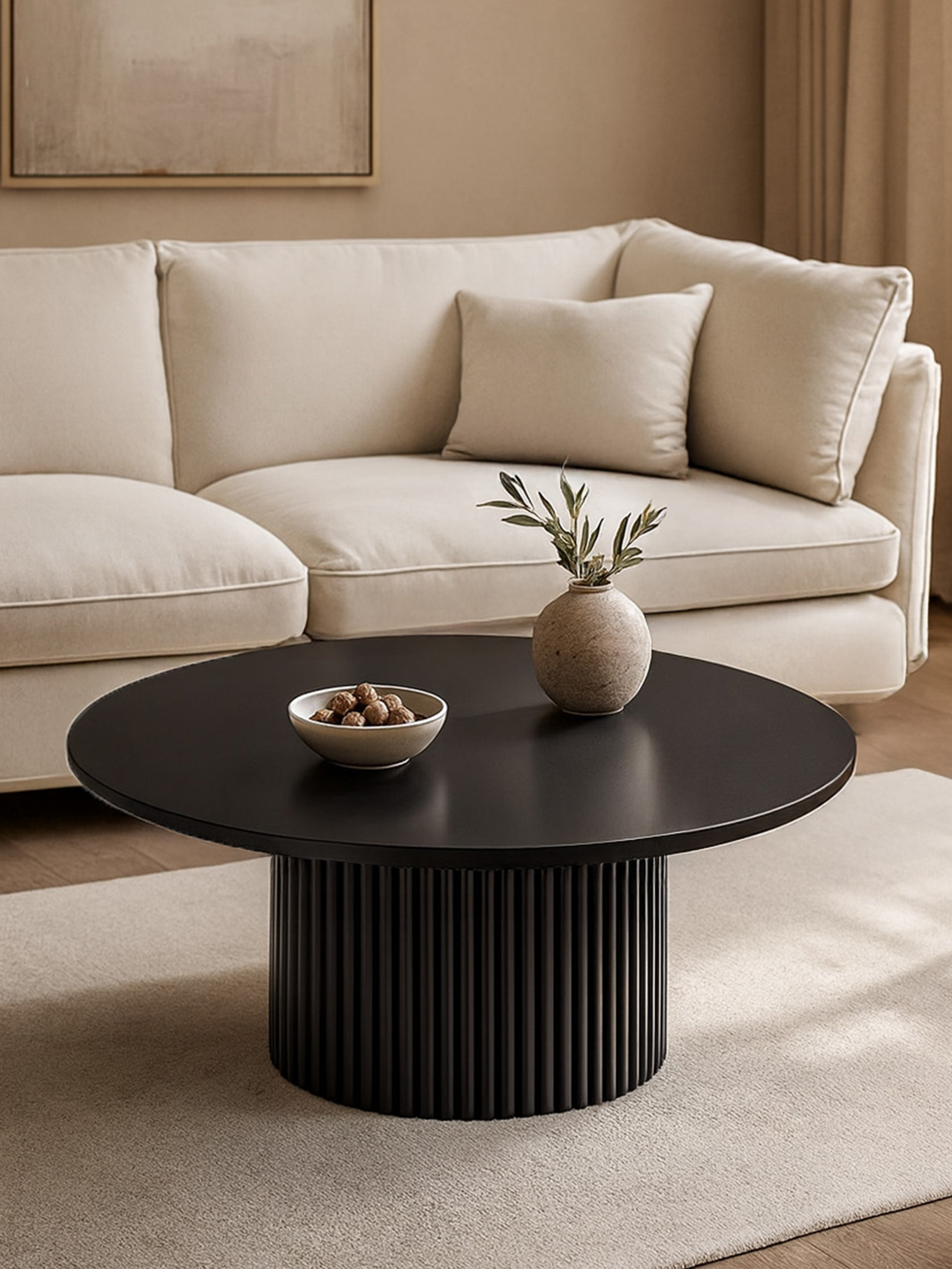 Buitengewone salontafels met een ronde blad en gegroefde poten in verschillende maten en kleuren kunnen in de woonkamer, slaapkamer of zelfs in de badkamer worden geplaatst en dienen als bijzettafel of bloemenstandaard.