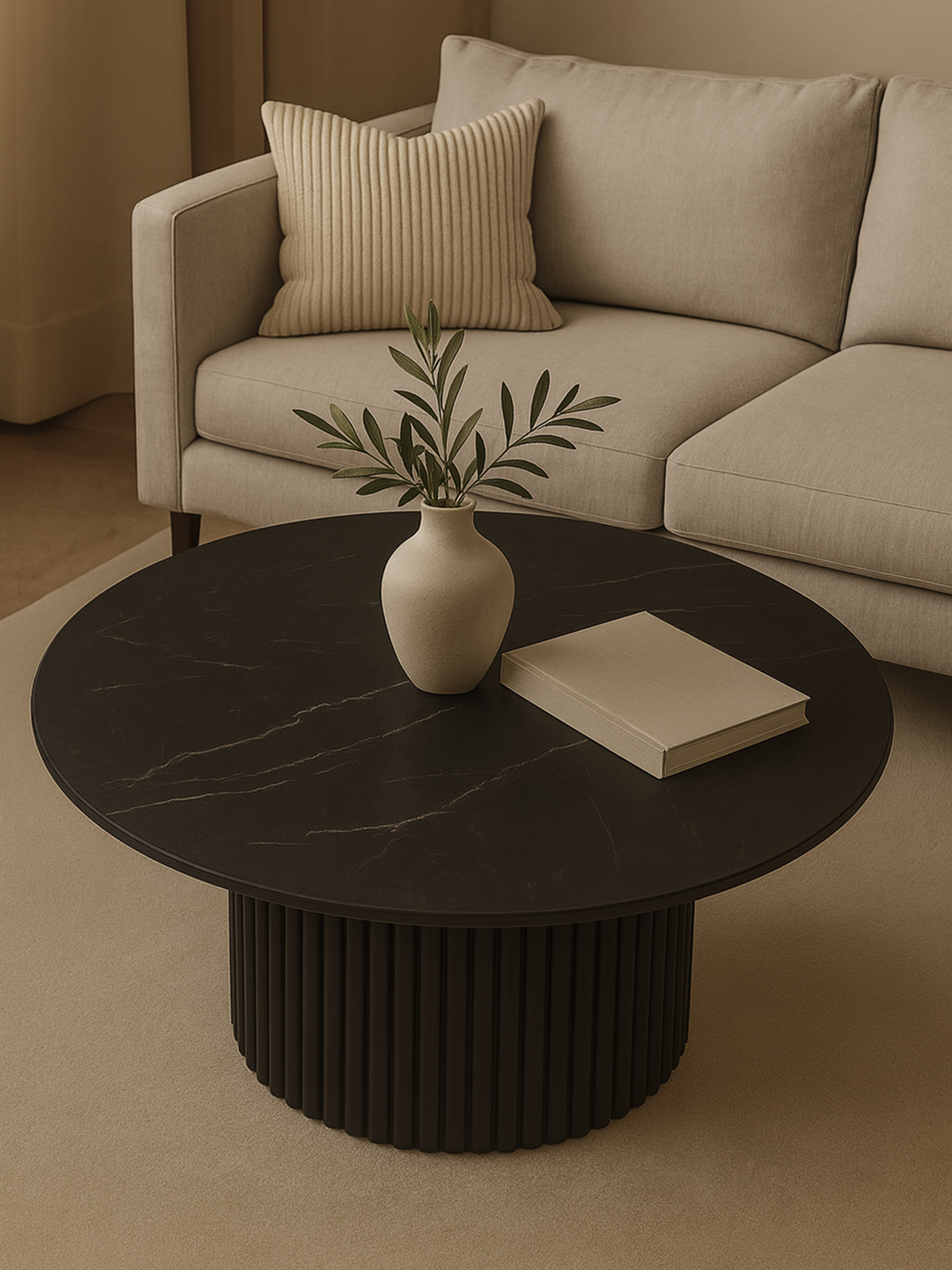 De salontafel met een stenen blad is de essentie van ons vakmanschap. Elk stuk wordt gekenmerkt door een uniek karakter dat het resultaat is van zorgvuldig handwerk.