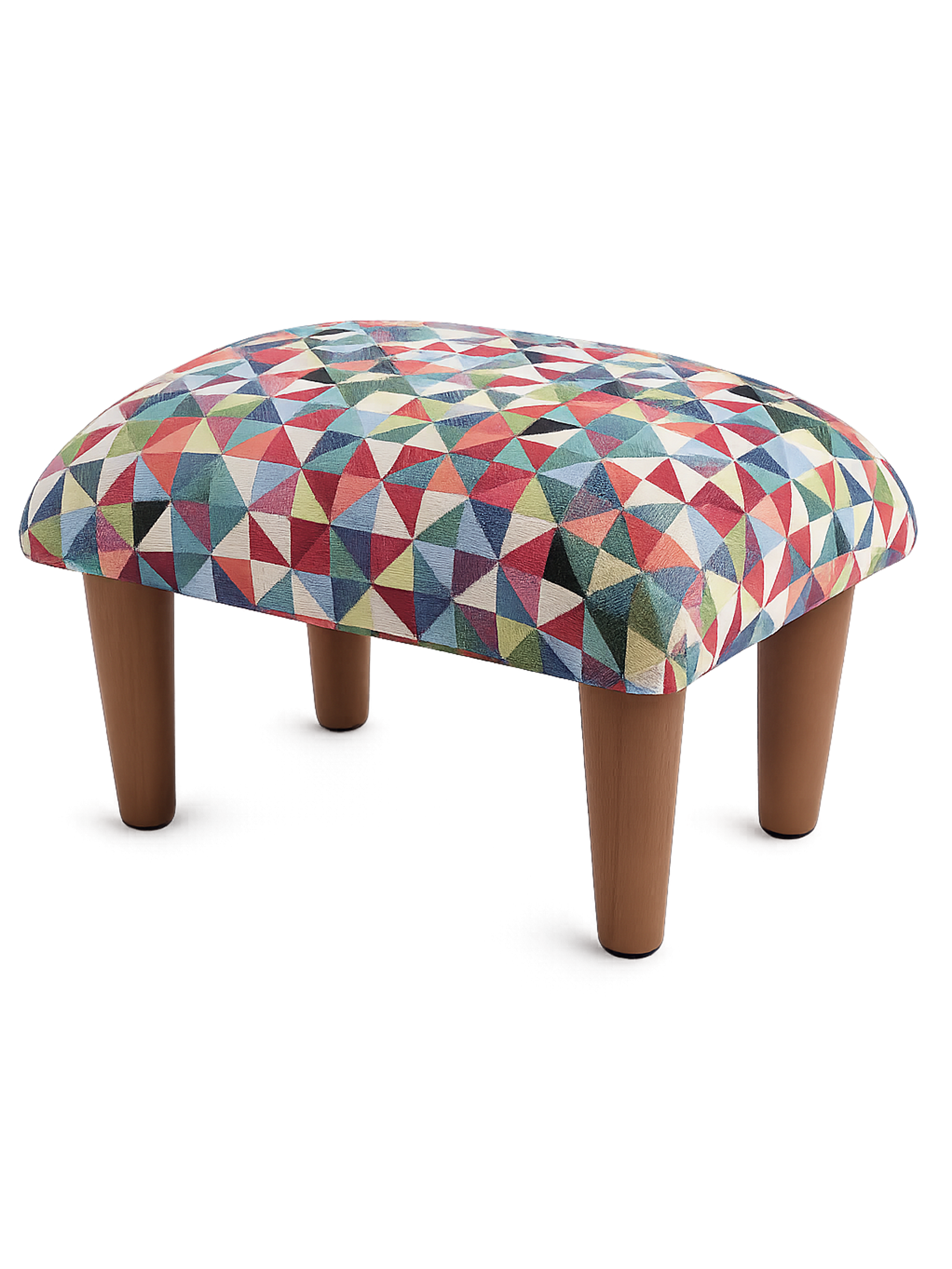 Geometrico bankje - Comfortabel en zacht bankje, bekleed met stof met Peruaanse patronen. Aantrekkelijke kleuren zullen elk kind blij maken. En toch wordt de hoogte van deze vleugel door u bepaald. Daarom kan het worden omgebouwd van een kaptafel- of pianobankje tot een kinderbankje. De materialen zijn veilig voor de gezondheid, ze zijn Oeko-Tex-gecertificeerd. Hypoallergeen schuim is ook veilig. Dit voetenbankje wordt gedragen door poten van eikenhout van klasse A, die we in uw gewenste kleur met slagvaste verf verven. Het verven gebeurt door spuiten.